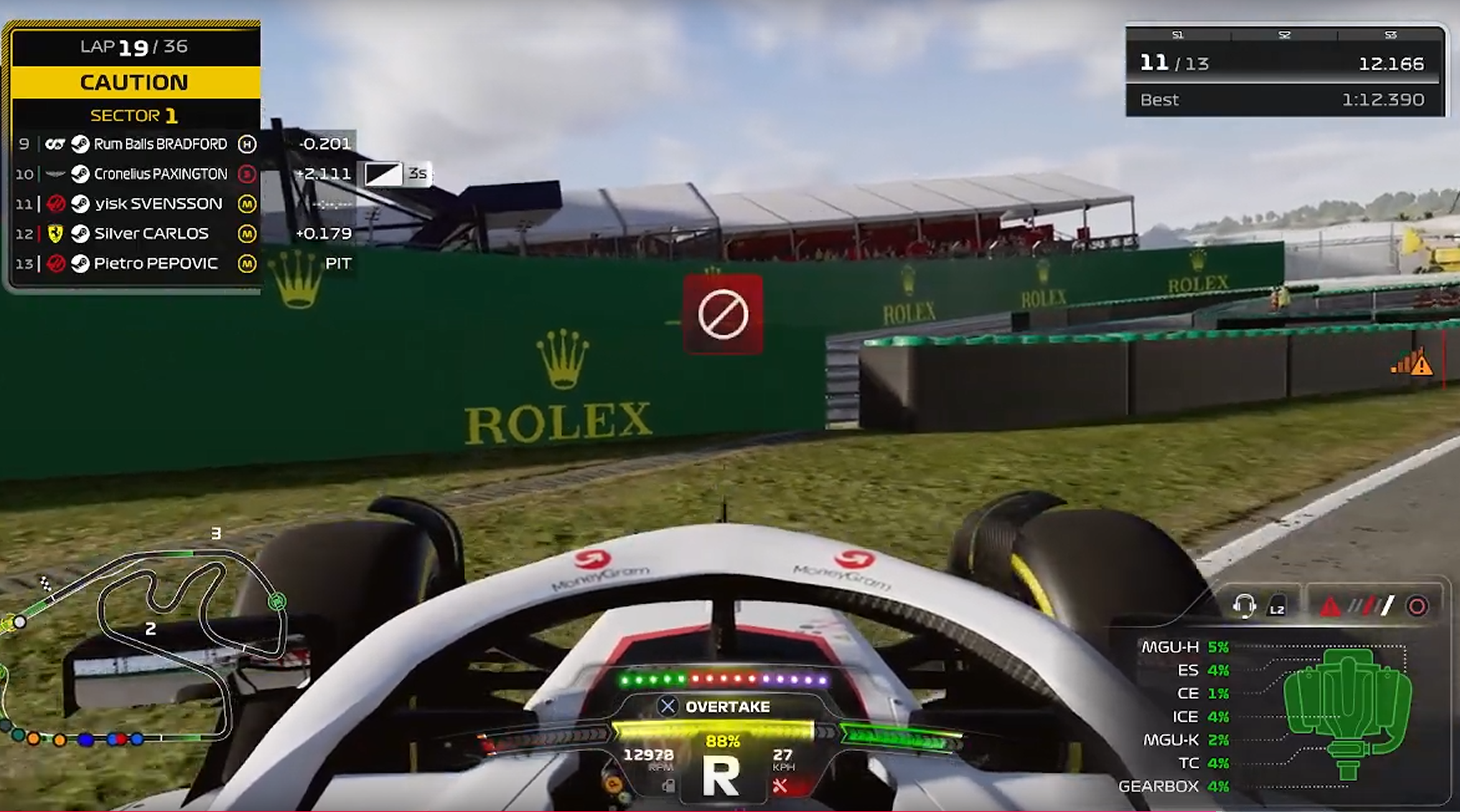 Svensson faces the wall, wingless, after another disastrous turn 1 incident