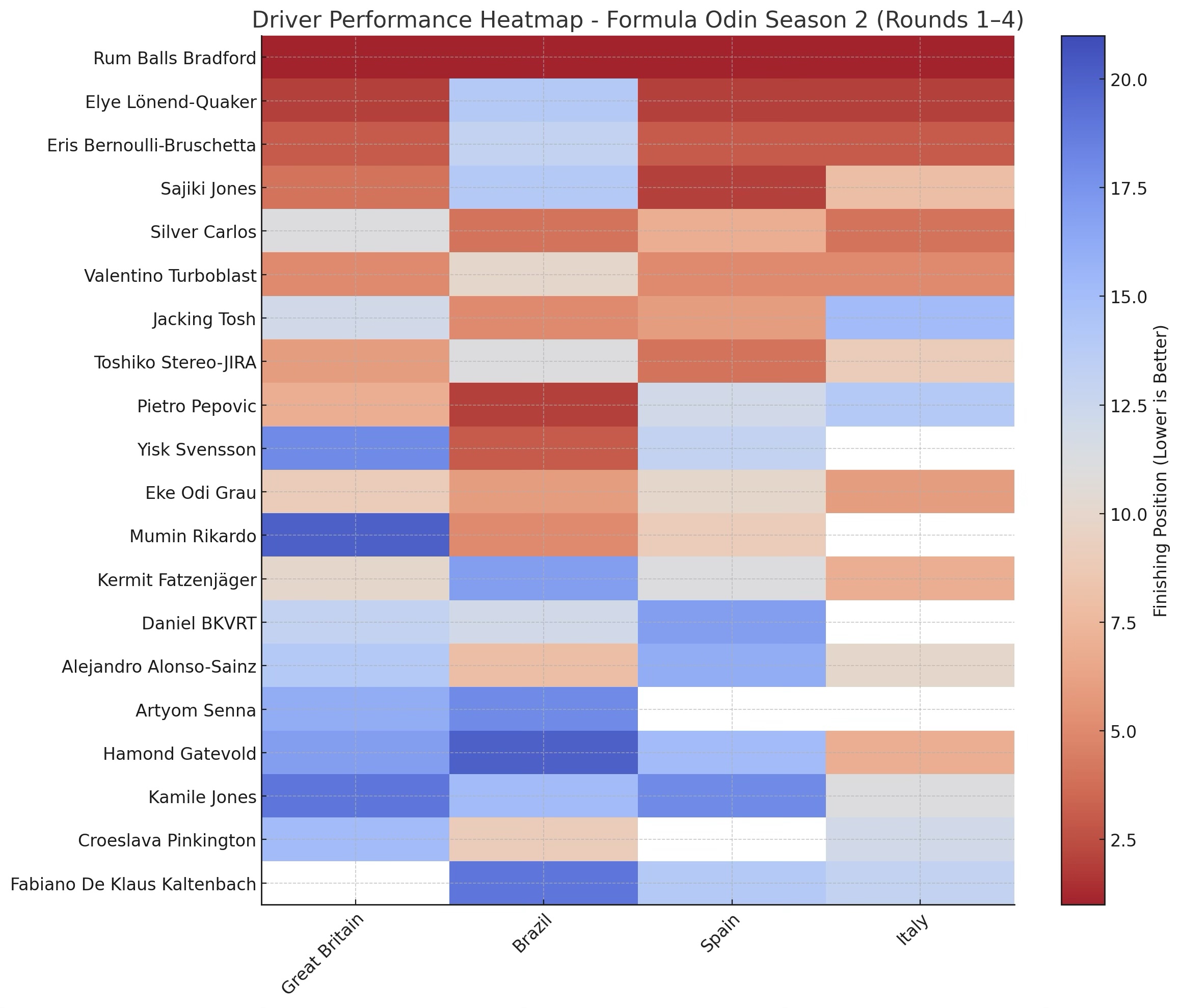 - Sajiki Jones (AlphaTauri) – 51 pts — Aggressive, fast, error-prone