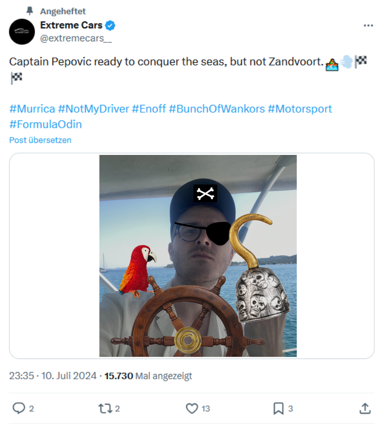 "I can't believe he thought it was a good idea to sail the night before a race! He should have been in the simulator, not on a yacht!" tweeted one disgruntled fan. Meanwhile, others took a more humorous approach, with one meme depicting Pepovic as a pirate, steering his yacht with the caption, "Captain Pepovic ready to conquer the seas, but not Zandvoort."