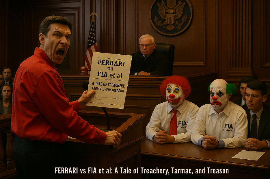 Now, Ferrari files a formal lawsuit titled: “Ferrari vs FIA et al: A Tale of Treachery, Tarmac, and Treason”